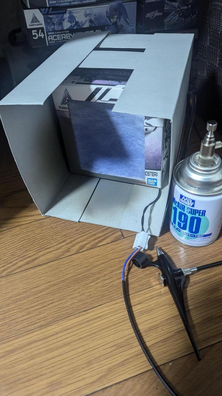必要なもの Amazonで買ったミニ換気扇と空いたプラモの箱