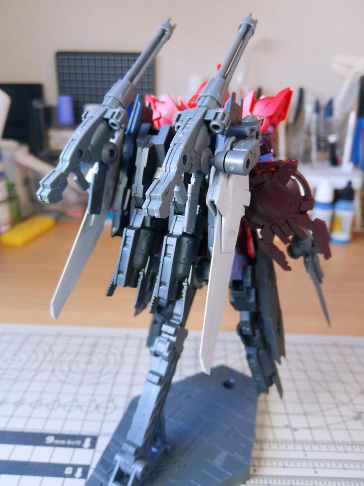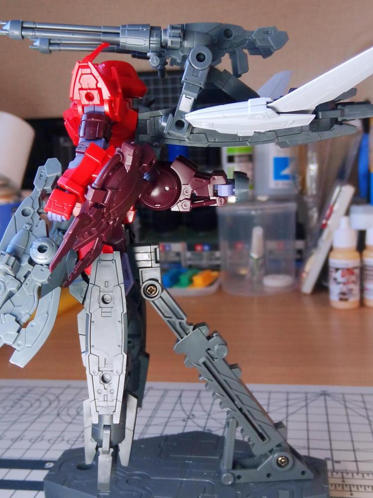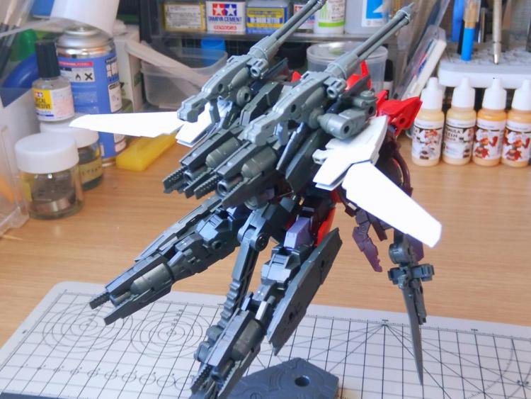コンセプトは地球連合軍の可変型EXMに対抗するためにカスタムされた、高機動迎撃仕様(Intercept)といった感じで、追加装備は可動の際に干渉しない様に意識して配置しました。