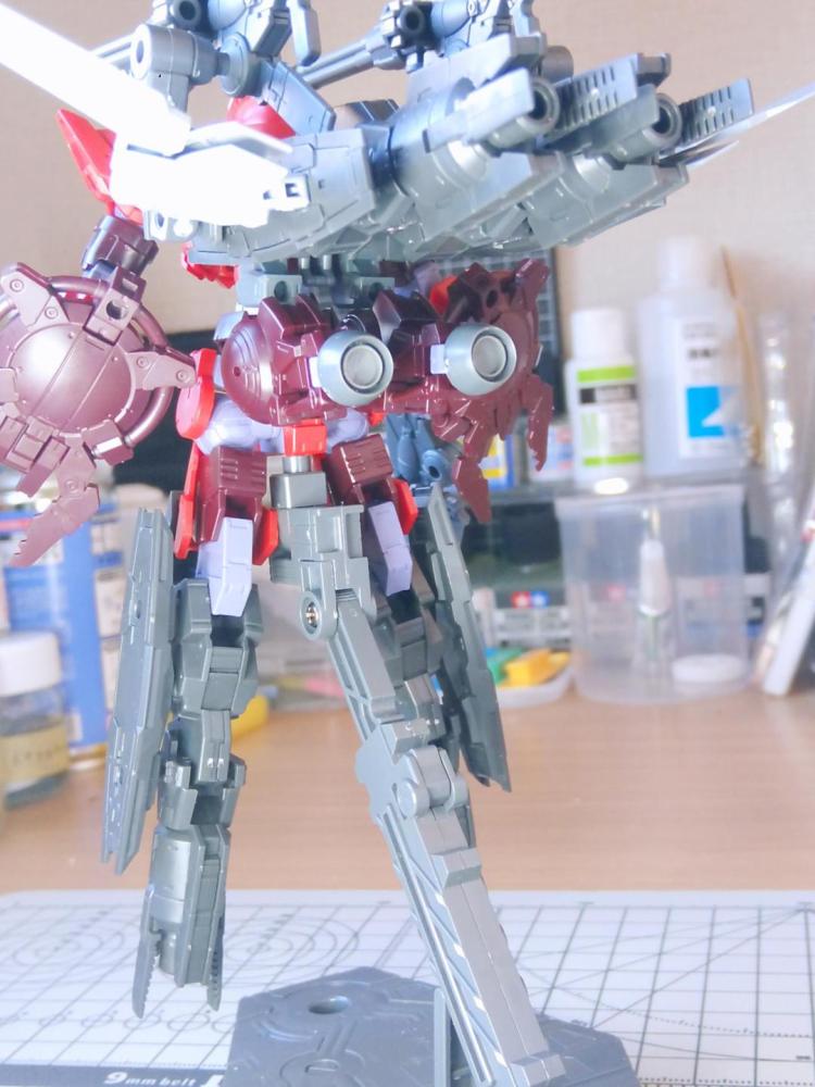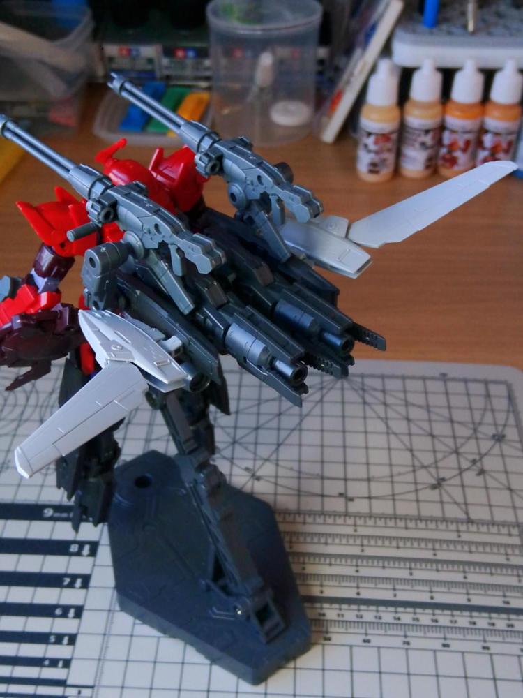 マルチブースターを脚部と背面に各2基機、脛パーツを流用した可動ブースターを2基で合計6基の増設。
