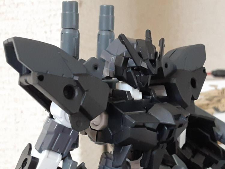 両肩のパーツはレヴェル/ガルドノヴァを使用しました。アクリジョンの調色と久々の筆塗りに苦労しましたが、つや消しトップコート吹いたらムラも抑えられた様子です