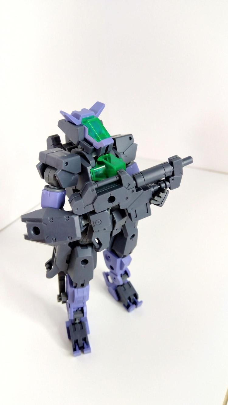 通常の02の頭部が好きになれなくて、白系機体組み合わせている時に、余剰パーツでカラバリ組んでみたら、なんか悪者か特殊部隊みたいなカラーになって、